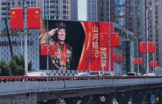 3500面嶄新的五星紅旗掛滿青年大街沿途,鱗次櫛比的高樓大廈戶外大屏同時(shí)點(diǎn)亮“山河銘記,英雄回家”“祖國(guó)從未忘記,人民永遠(yuǎn)銘記”等紅色標(biāo)語(yǔ),這些滾動(dòng)的字句猶如跳動(dòng)的火焰,點(diǎn)亮城市的每一個(gè)角落。